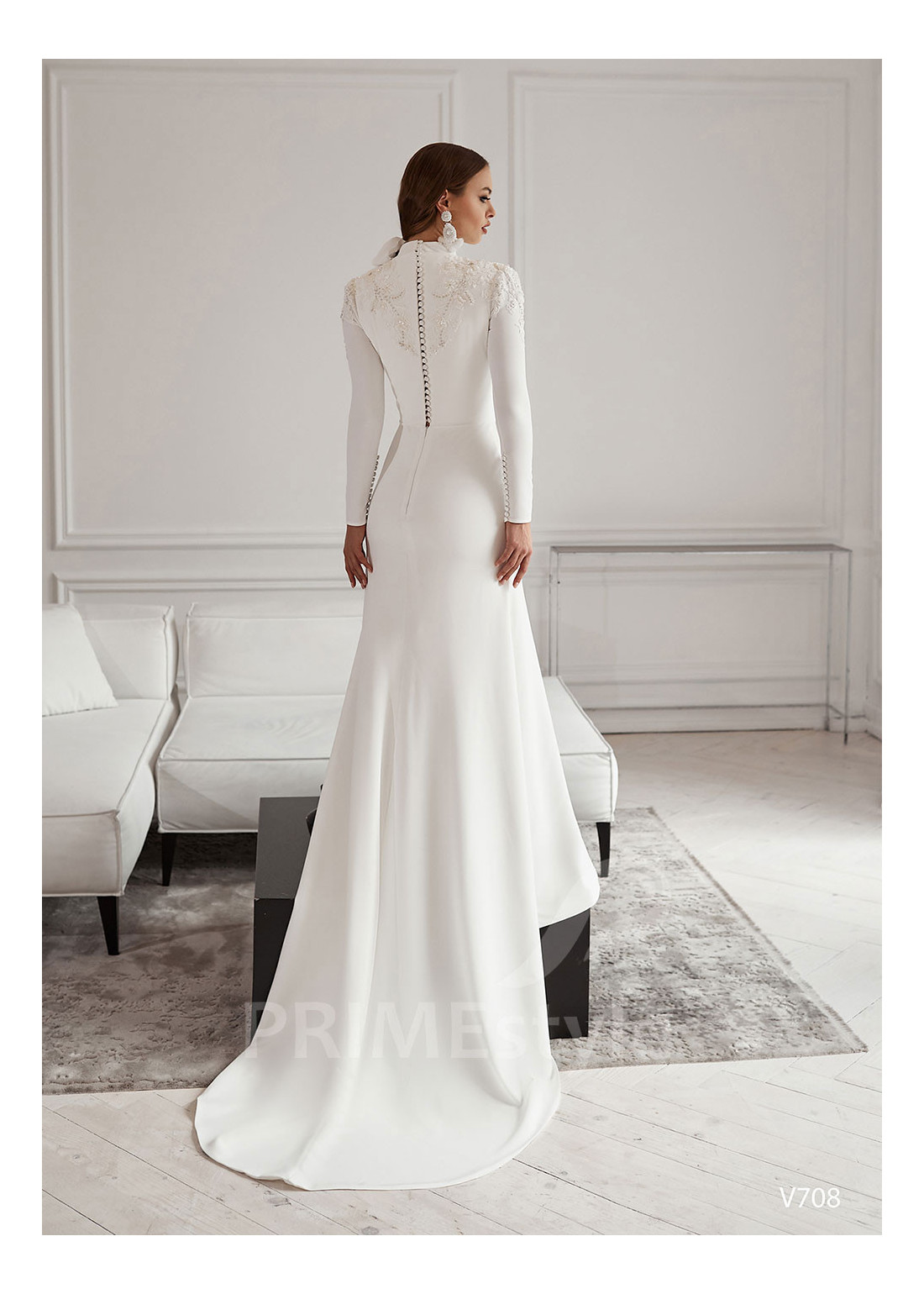 Tento model si môžete objednať v rôznych konfekčných veľkostiach buď s vlečkou alebo bez. Ak máte atypickú postavu, pri výbere veľkosti odporúčame zvoliť opciu "Šitie na mieru" (za šitie svadobných šiat na mieru účtujeme príplatok 50 Eur).