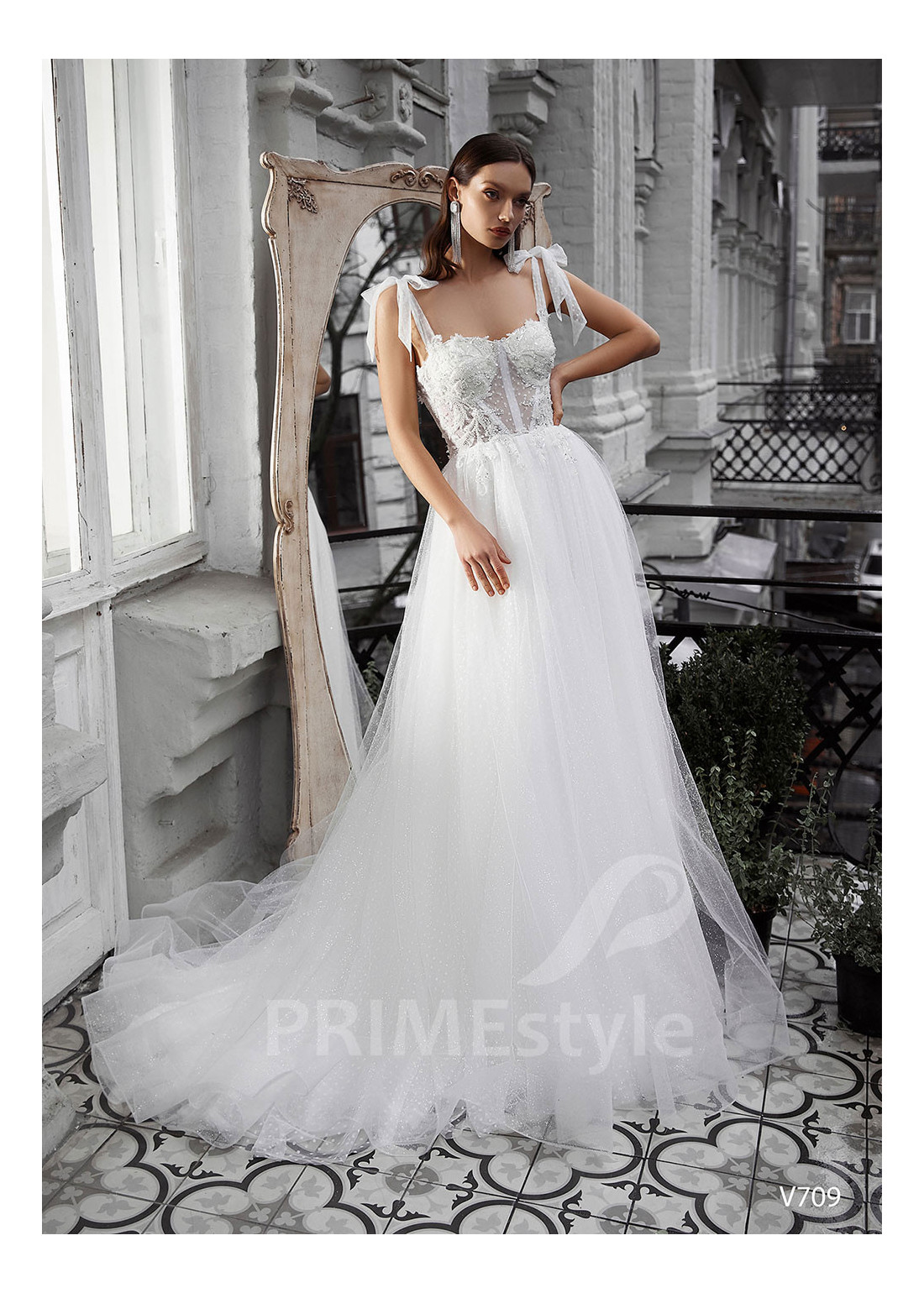 Tento model si môžete objednať v rôznych konfekčných veľkostiach buď s vlečkou alebo bez. Ak máte atypickú postavu, pri výbere veľkosti odporúčame zvoliť opciu "Šitie na mieru" (za šitie svadobných šiat na mieru účtujeme príplatok 50 Eur).
