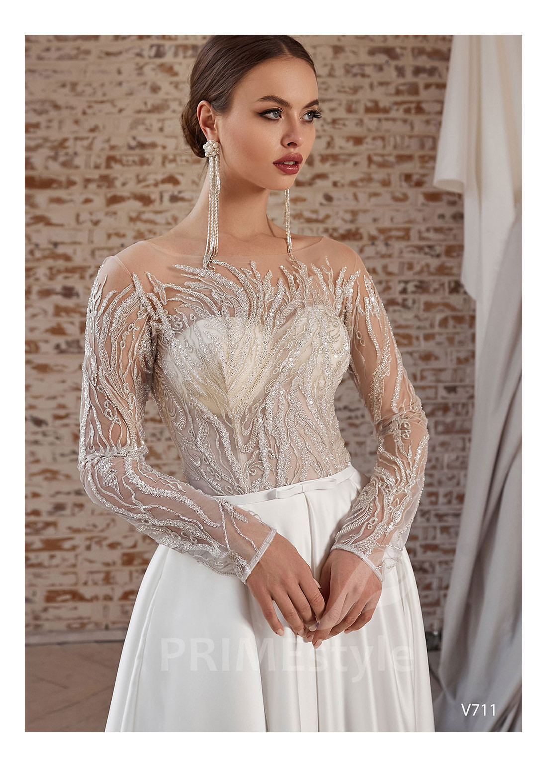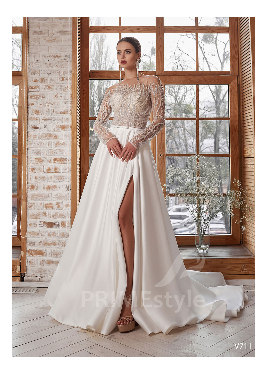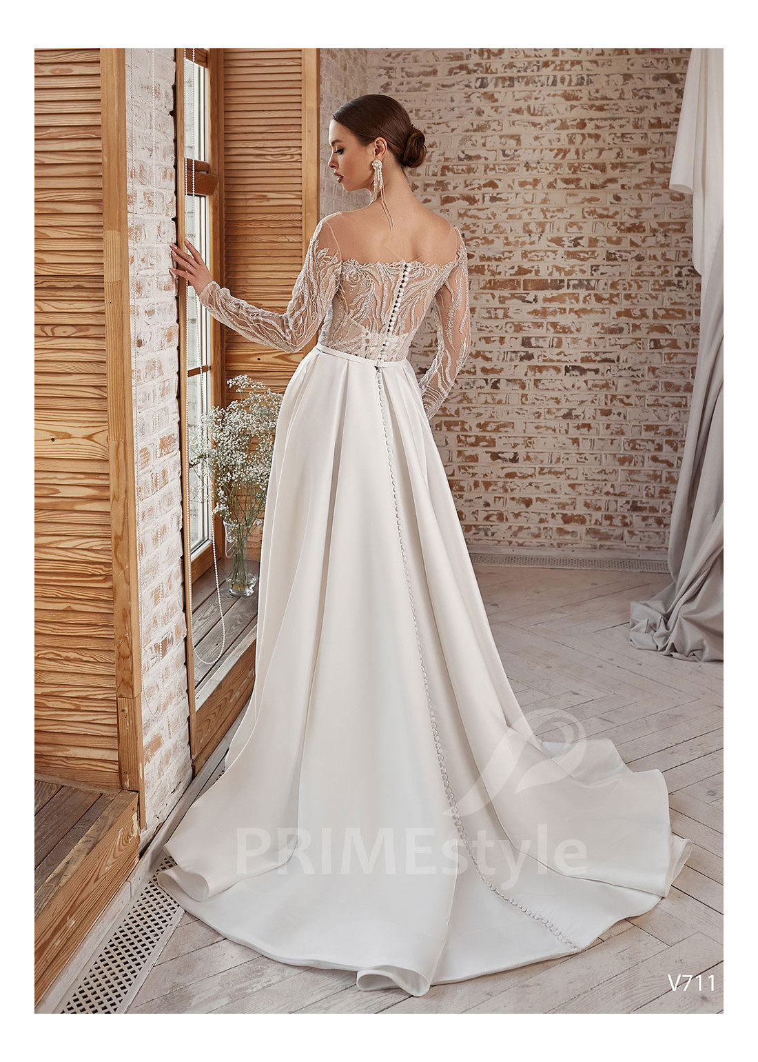Tento model si môžete objednať v rôznych konfekčných veľkostiach buď s vlečkou alebo bez. Ak máte atypickú postavu, pri výbere veľkosti odporúčame zvoliť opciu "Šitie na mieru" (za šitie svadobných šiat na mieru účtujeme príplatok 50 Eur).