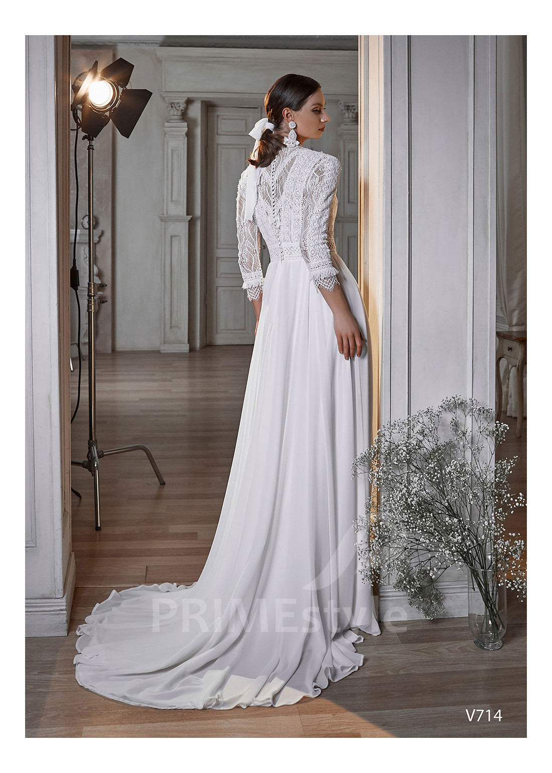 Tento model si môžete objednať v rôznych konfekčných veľkostiach buď s vlečkou alebo bez. Ak máte atypickú postavu, pri výbere veľkosti odporúčame zvoliť opciu "Šitie na mieru" (za šitie svadobných šiat na mieru účtujeme príplatok 50 Eur).