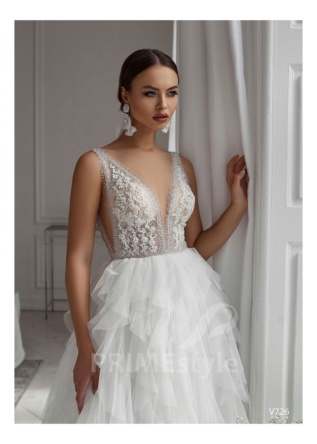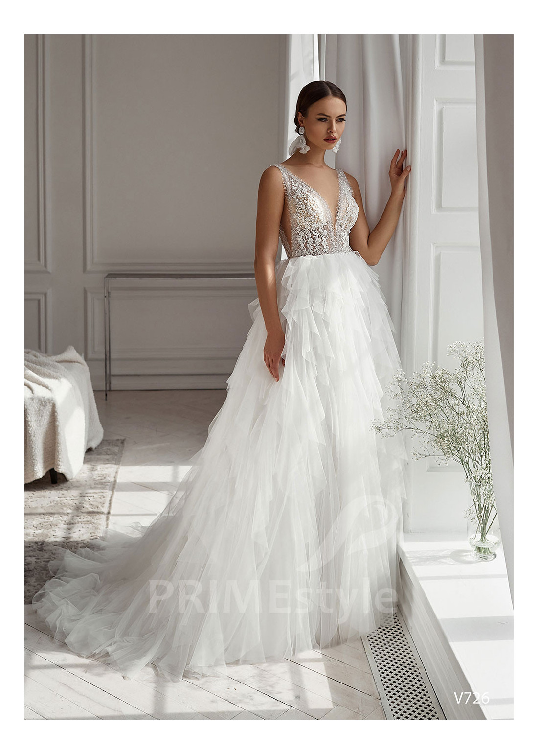 Tento model si môžete objednať v rôznych konfekčných veľkostiach buď s vlečkou alebo bez. Ak máte atypickú postavu, pri výbere veľkosti odporúčame zvoliť opciu "Šitie na mieru" (za šitie svadobných šiat na mieru účtujeme príplatok 50 Eur).