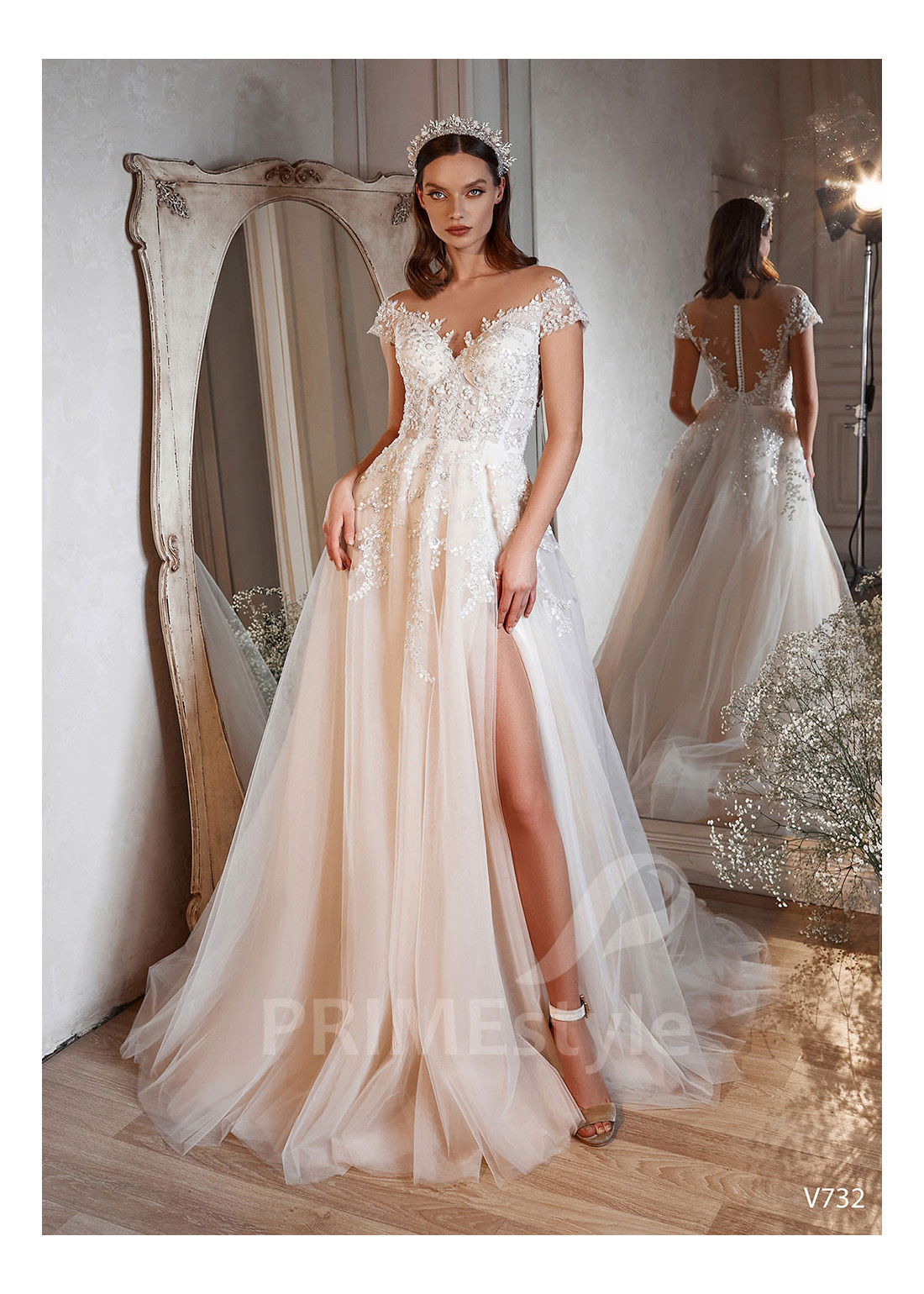 Tento model si môžete objednať v rôznych konfekčných veľkostiach buď s vlečkou alebo bez. Ak máte atypickú postavu, pri výbere veľkosti odporúčame zvoliť opciu "Šitie na mieru" (za šitie svadobných šiat na mieru účtujeme príplatok 50 Eur).