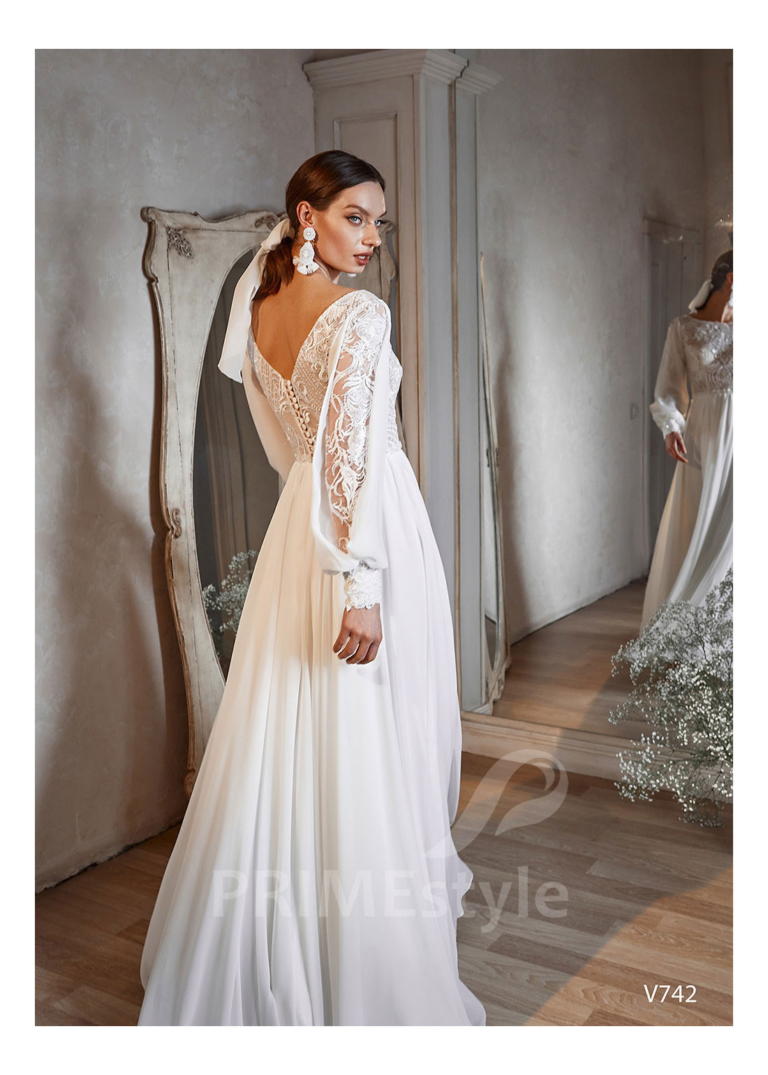Tento model si môžete objednať v rôznych konfekčných veľkostiach buď s vlečkou alebo bez. Ak máte atypickú postavu, pri výbere veľkosti odporúčame zvoliť opciu "Šitie na mieru" (za šitie svadobných šiat na mieru účtujeme príplatok 50 Eur).